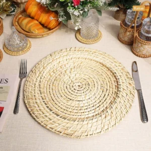 The entire production process is inherently eco-friendly. No harsh chemicals are used, from the sun-drying of the raw fibers to the manual, chemical-free weaving techniques. By choosing a natural, handmade Underplate—whether it’s a placemat, coaster, or charger—you are making a conscious and powerful decision to support sustainable practices and reject the plastics and synthetic materials that contribute to pollution and harm our planet. It is a choice that feels as good as it looks.