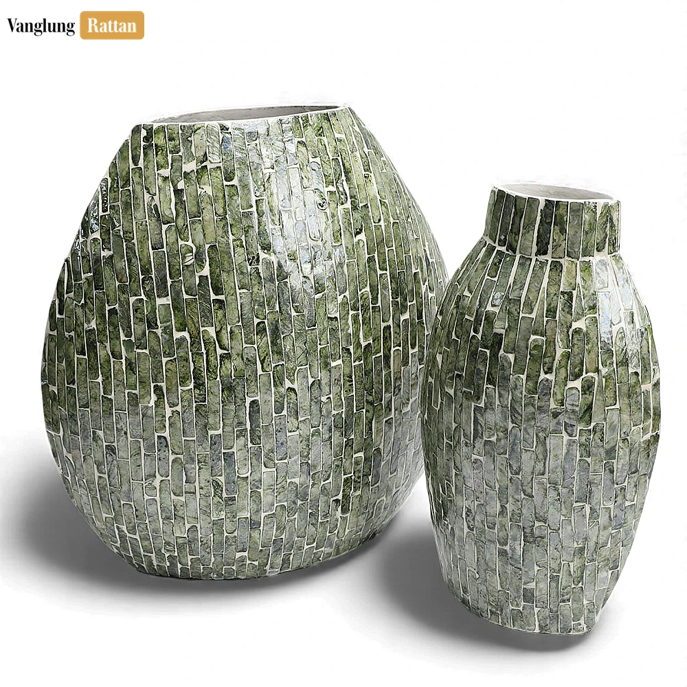 VANGLUNGRATTAN is a worldwide supplier of high-quality, genuine natural materials, including rattan, seagrass, and woven bamboo, all at reasonable prices. Our motto is simple: customer satisfaction always comes first. We strive to provide the best shopping experience, from our popular Dark Green Mother of Pearl Brick Mosaic Vase – Brick Pattern Christmas Décor – DCVA25006 to our diverse collections of tableware, underplates, bathroom décor, handmade baskets, and serving trays.