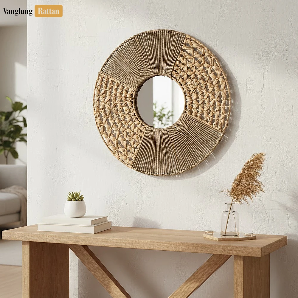 VANGLUNGRATTAN is a worldwide supplier of high-quality, genuine natural materials, including rattan, seagrass, and woven bamboo, all at reasonable prices. Our motto is simple: customer satisfaction always comes first. We strive to provide the best shopping experience, from our popular Handcrafted Seagrass and Cord Mirror – Sustainable Decorative Wall Art for Living Room – DC0725013 to our diverse collections of tableware, underplates, bathroom décor, handmade baskets, and serving trays.