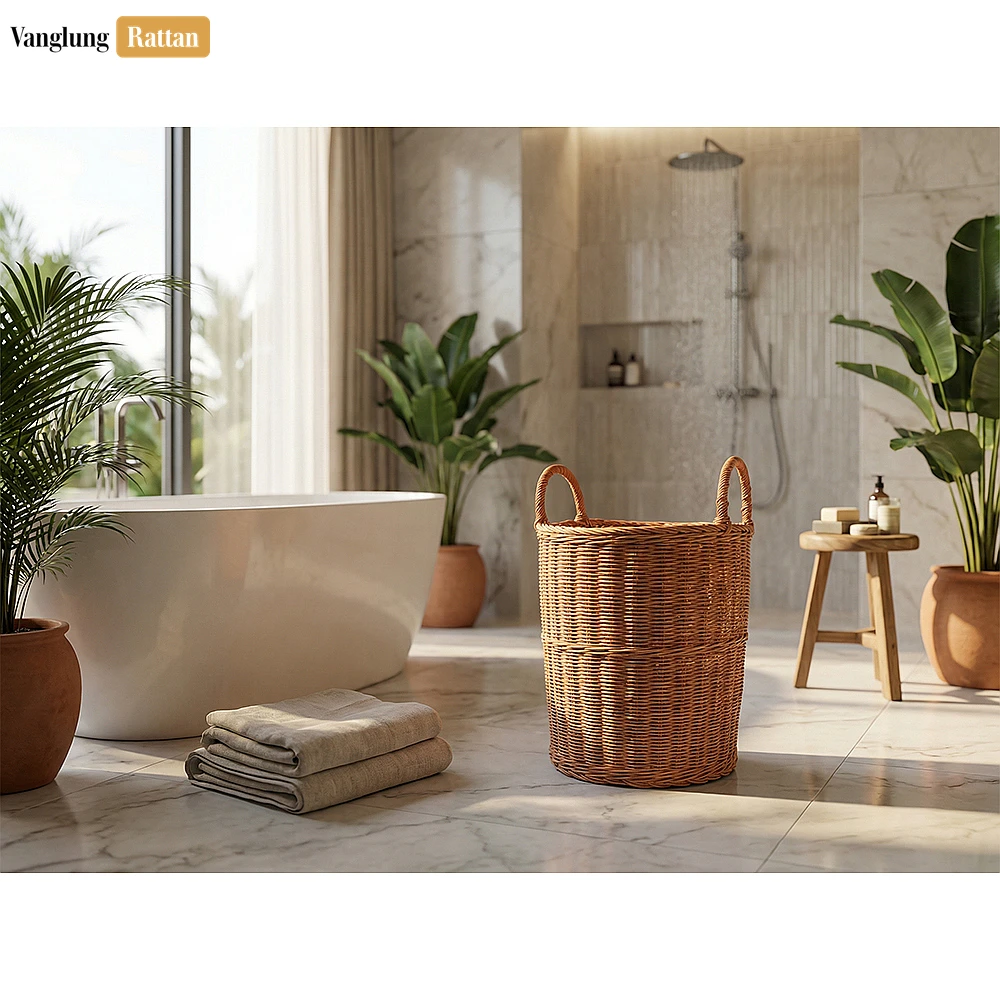 VANGLUNGRATTAN is a worldwide supplier of high-quality, genuine natural materials, including rattan, seagrass, and woven bamboo, all at reasonable prices. Our motto is simple: customer satisfaction always comes first. We strive to provide the best shopping experience, from our popular Natural Core Rattan Bathroom Basket with Handles – Woven Laundry and Towel Storage – BB031008 to our diverse collections of tableware, underplates, bathroom décor, handmade baskets, and serving trays.