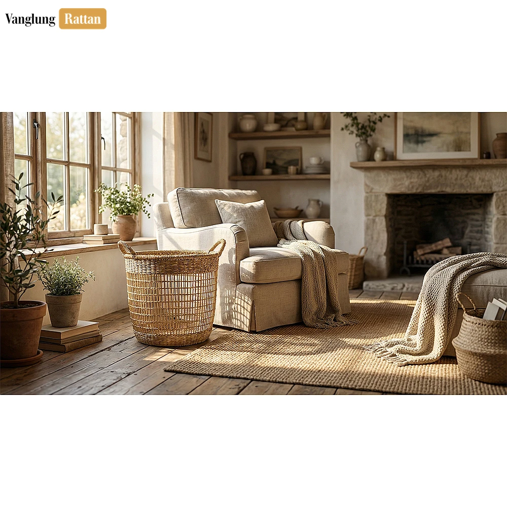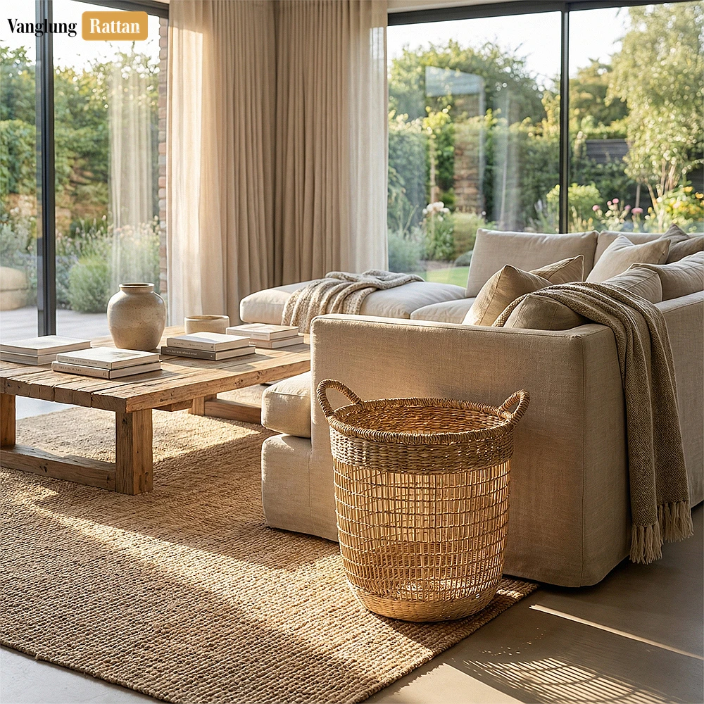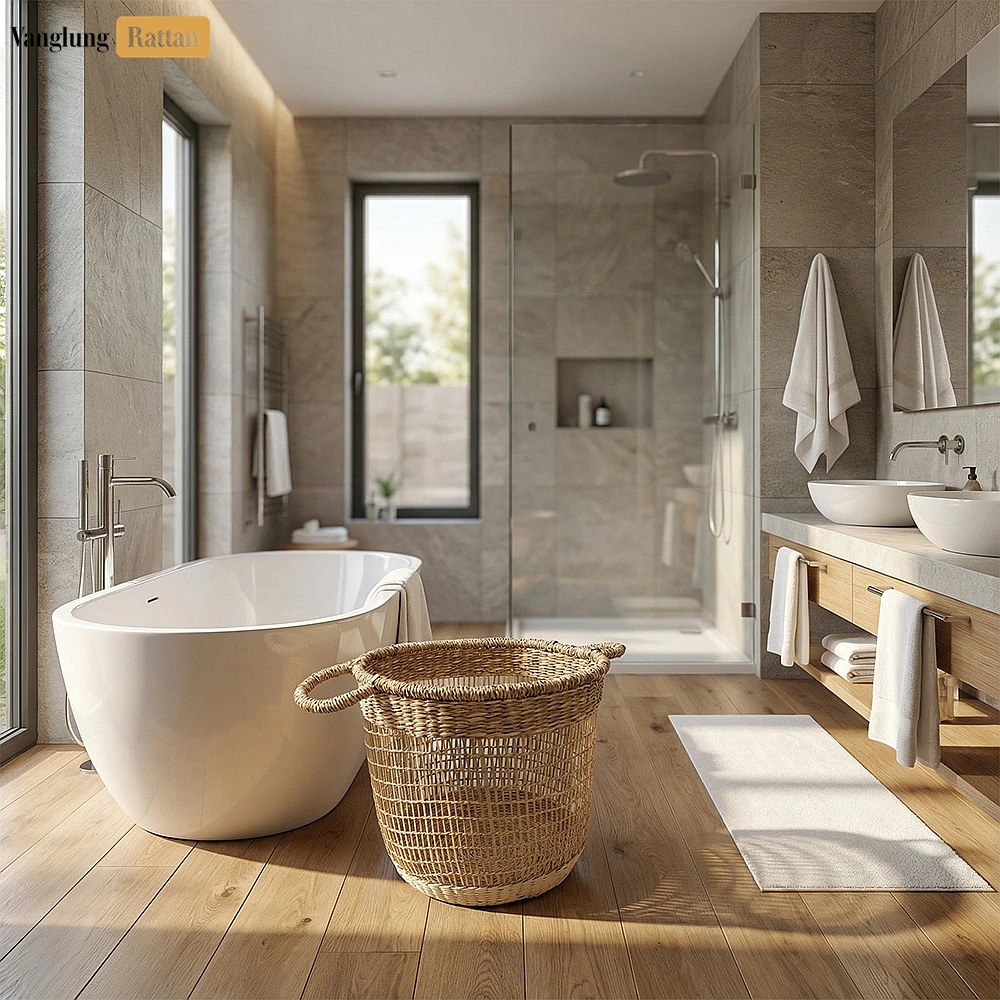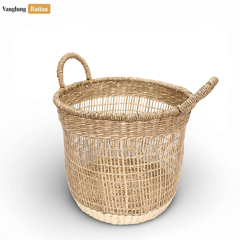 Product name: Natural Seagrass Bathroom Basket with Handles – Airy Woven Storage for Towels and Décor – SB071006