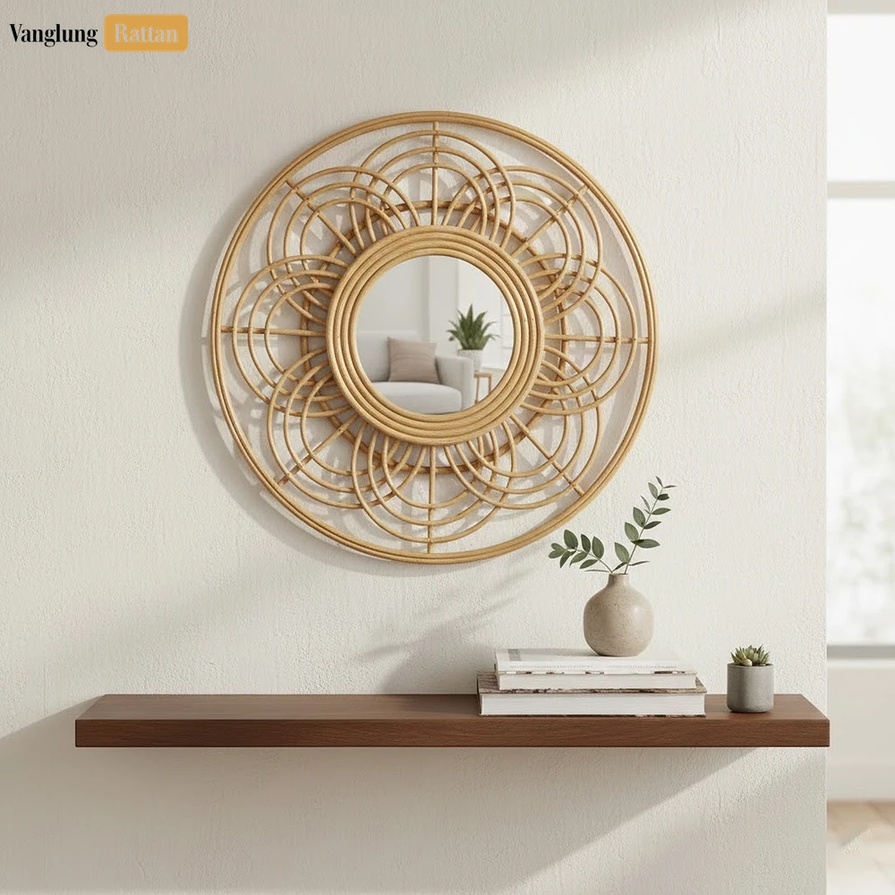 VANGLUNGRATTAN is a worldwide supplier of high-quality, genuine natural materials, including rattan, seagrass, and woven bamboo, all at reasonable prices. Our motto is simple: customer satisfaction always comes first. We strive to provide the best shopping experience, from our popular Round Coiled Bamboo Wall Mirror – Natural Floral Geometric Home Decor Accent – DC0325009 to our diverse collections of tableware, underplates, bathroom décor, handmade baskets, and serving trays.