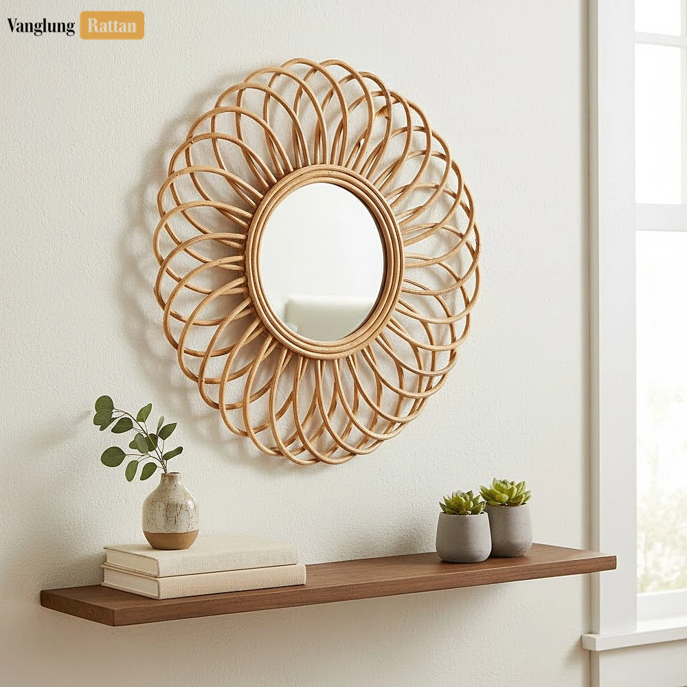 VANGLUNGRATTAN is a worldwide supplier of high-quality, genuine natural materials, including rattan, seagrass, and woven bamboo, all at reasonable prices. Our motto is simple: customer satisfaction always comes first. We strive to provide the best shopping experience, from our popular Round Coiled Bamboo Wall Mirror – Natural Swirl Geometric Home Decor Accent – DC0325010 to our diverse collections of tableware, underplates, bathroom décor, handmade baskets, and serving trays.