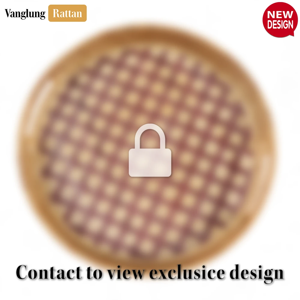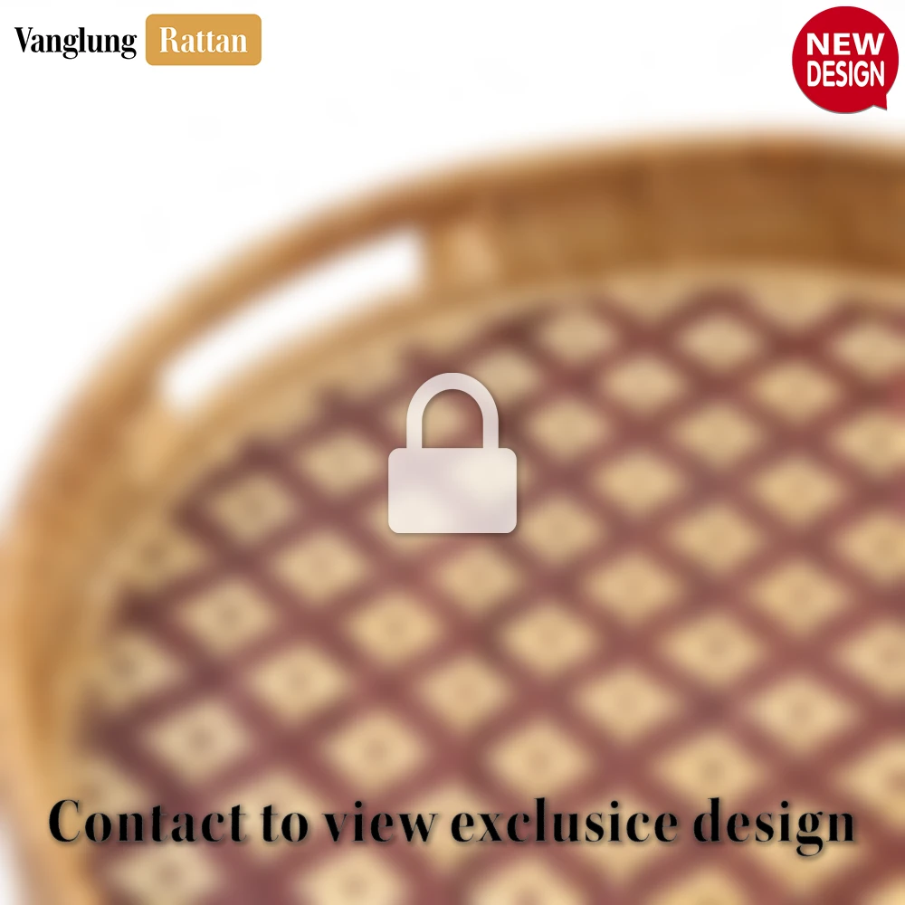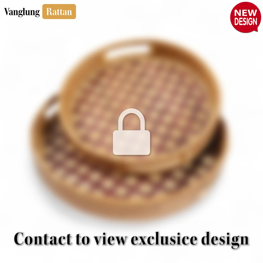 Round Handwoven Bamboo Rattan Handles Serving Tray with Brown Natural Diamond Weave – STRO013003BR