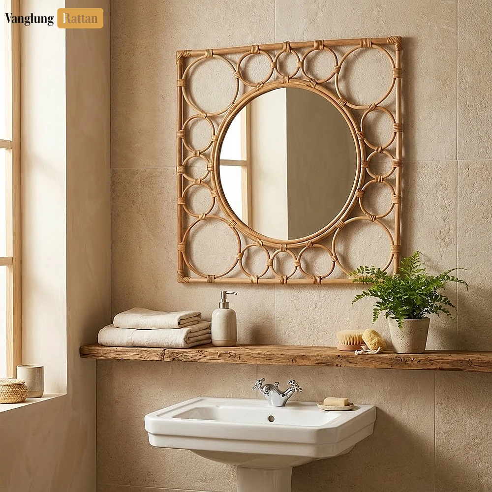 VANGLUNGRATTAN is a worldwide supplier of high-quality, genuine natural materials, including rattan, seagrass, and woven bamboo, all at reasonable prices. Our motto is simple: customer satisfaction always comes first. We strive to provide the best shopping experience, from our popular Square Coiled Bamboo Bathroom Mirror – Natural Rattan Style Geometric Wall Décor – DC0325002 to our diverse collections of tableware, underplates, bathroom décor, handmade baskets, and serving trays.