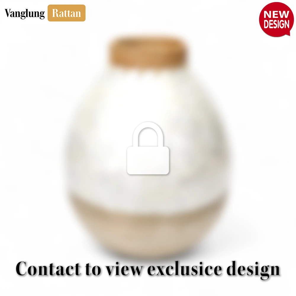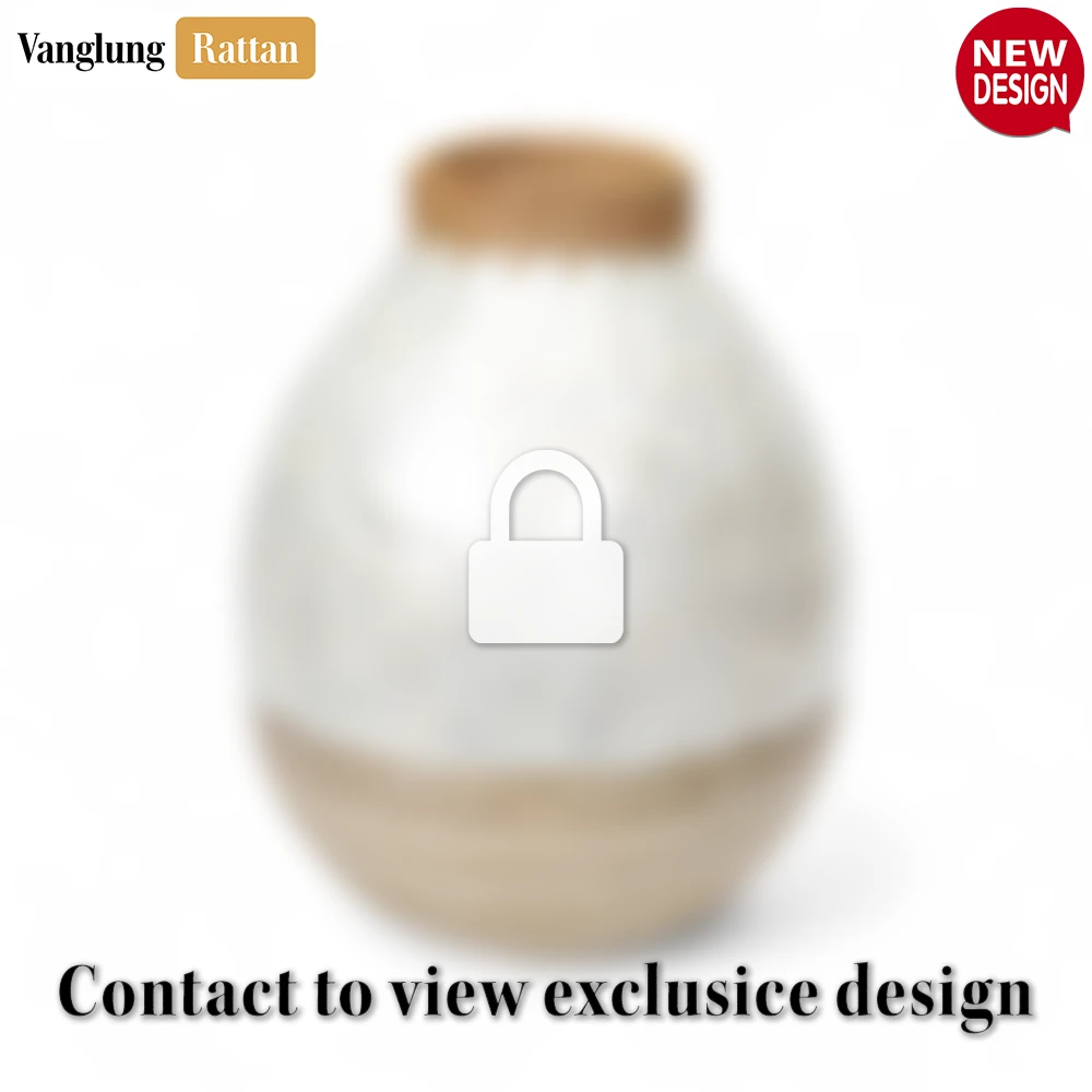 Tall Mother of Pearl Tapered Vase with Rattan Collar – Rustic Glam Christmas Decor – DCVA25009B